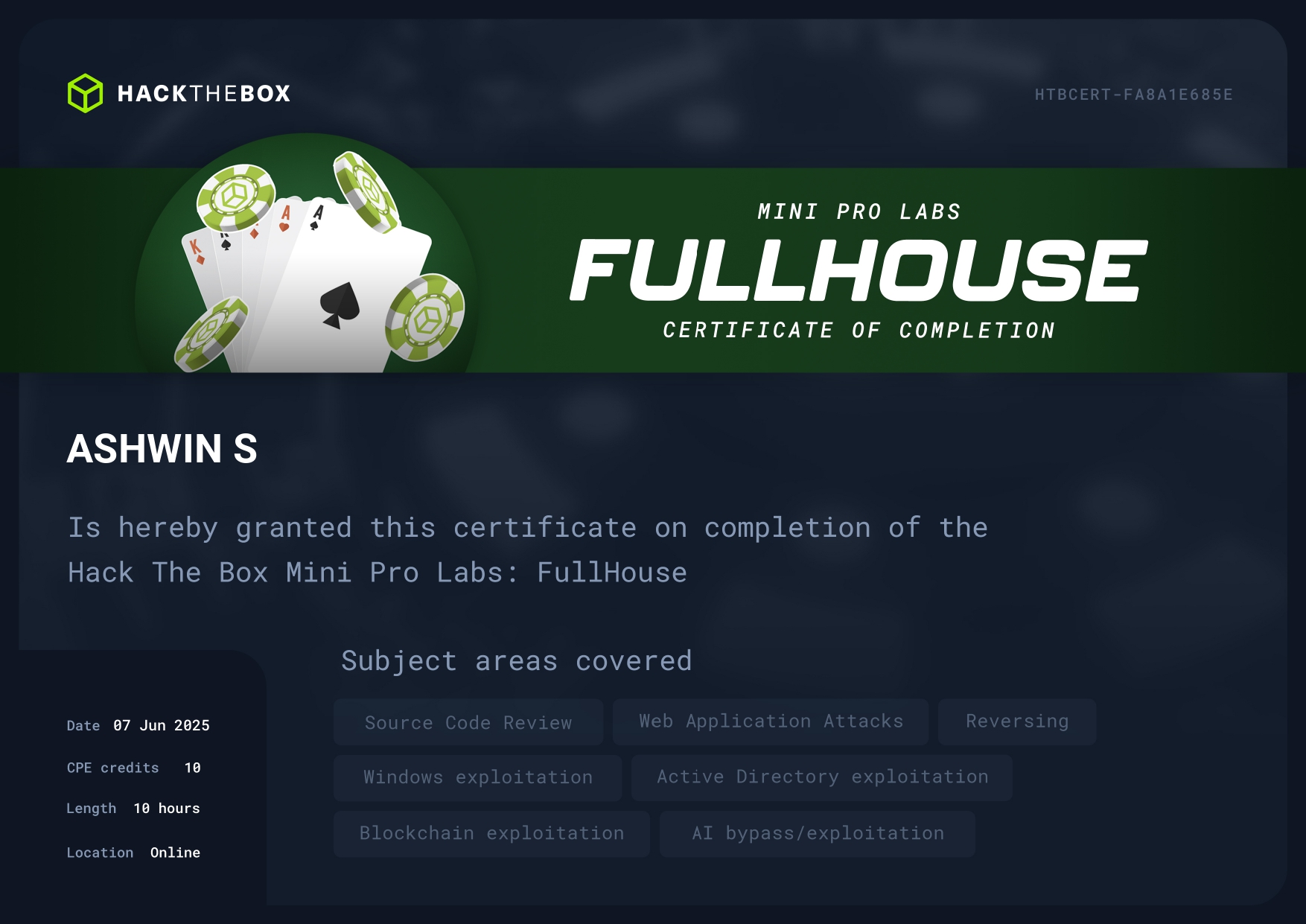 🎖️ Certifications & Lab Achievements