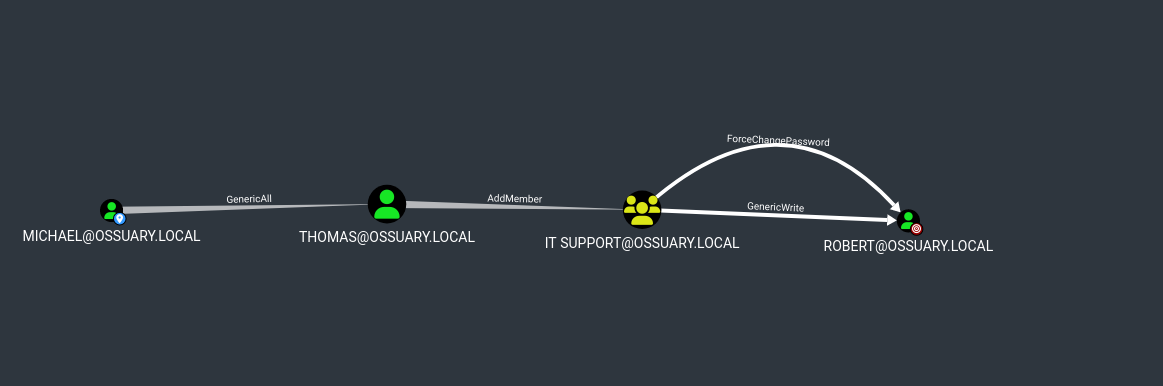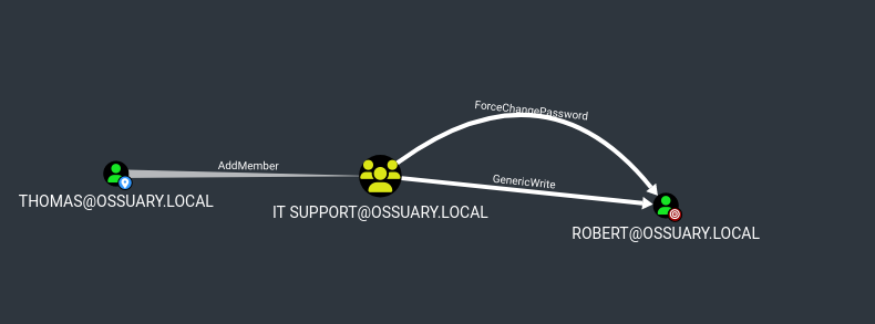 robert | AddMember + GenericAll chain | Group membership grants excessive rights |